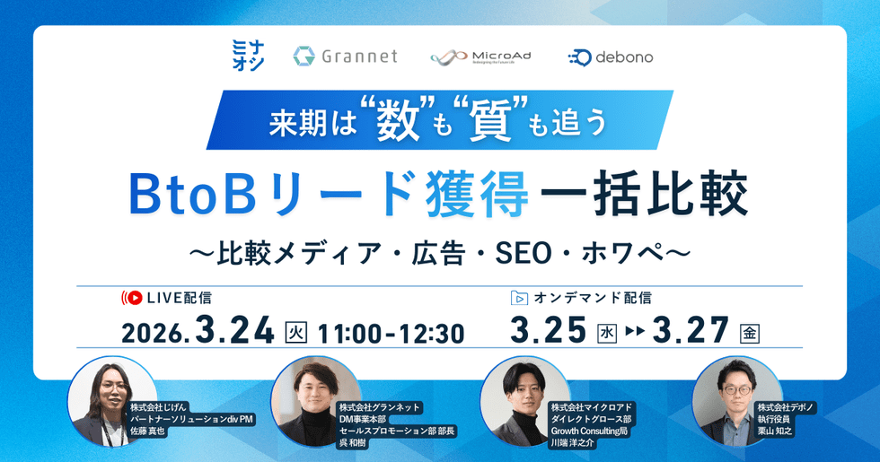 本ウェビナーでは各領域のプロフェッショナル4社が、机上の空論ではない「いま最も費用対効果が合うリード獲得の真実」を徹底比較します。